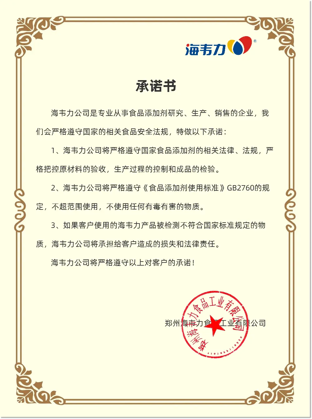 食品安全承诺书